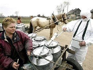 Кооптуу деп эсептелген аймакка жакын жайгашкан Губаревич шаарында идиштердеги сүттүн радиациясы текшерилүүдө.