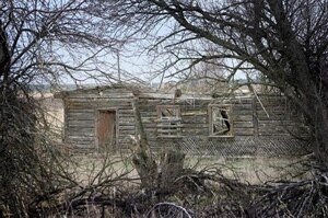 Чернобыль кырсыгынан кийин аймакта калган жыгач там.