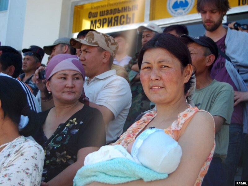 Кабарчыбыздын айтымында, борбордук аянтка чогулган үч жүзгө жүзгө жакын адамдар Роза Отунбаевага жолугуп, барымтада жаткан адамдарды бошотуп алууга чара көрүүнү, өзбек маалилериндеги тосмолорду алып салууну талап кылышты. Ошондой эле чогулгандар милиция жана аскер күчтөрү куралдардарды жалаң гана кыргыздардан жыйнап, өзбек тарапка кире албай жатканын айтышып, өзбектердин дагы колундагы куралдарды жыйнап алуу зарыл дешти.
